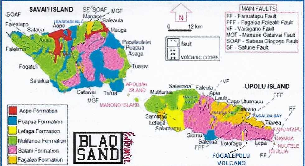 From oldest to youngest are termed: the Fagaloa Volcanic Formation, the Salani Volcanic Formation, the Mulifanua Volcanic Formation, the Puapua Volcanic Formation, the Lefaga Volcanic Formation and the Aopo Volcanic Formation (click Figure1 )
